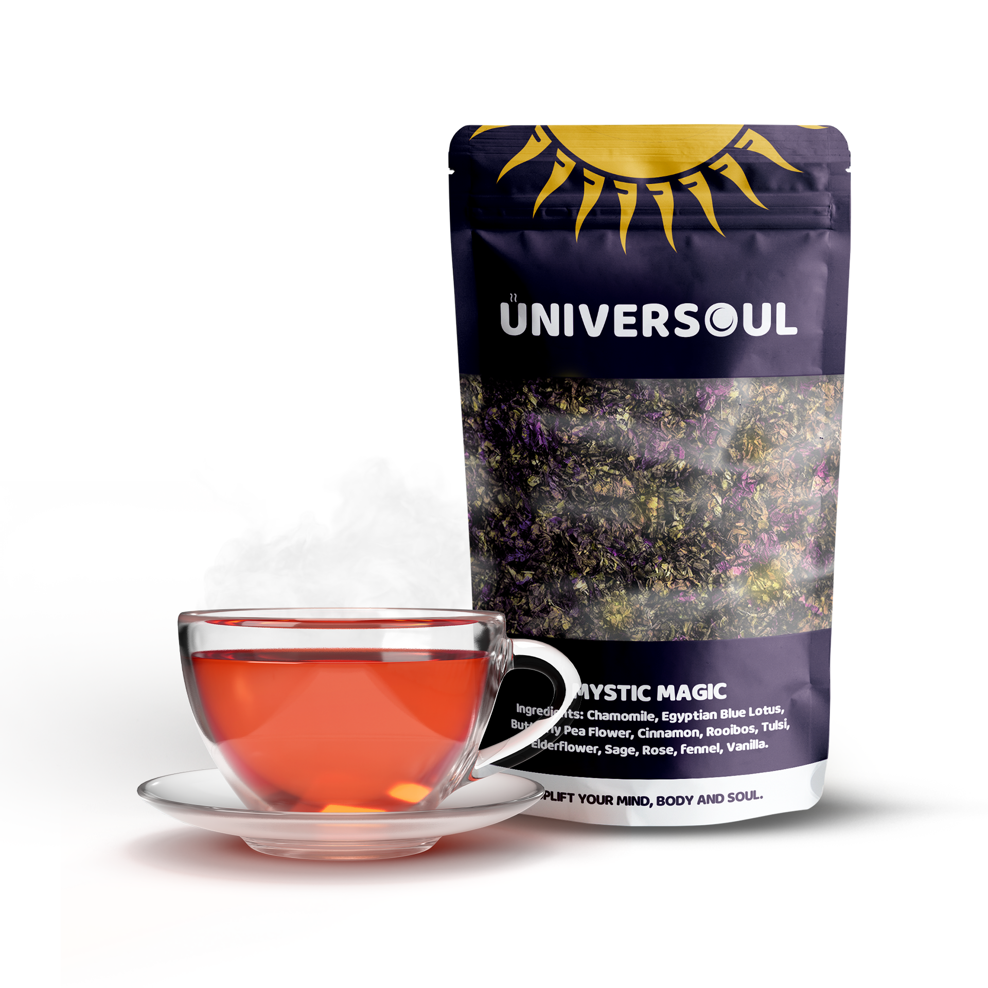 Egyptian Blue Lotus Flower, Chamomile, Rooibos, and Rose gently open the heart and relax the body, while Gotu Kola stimulates the crown and clears the mind. And don’t be surprised by the vibrant hue of the tea—it’s part of the magic!
